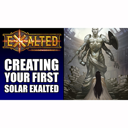 You can learn more about Exalted here: http://theonyxpath.com/category/worlds/exalted/ You can purchase Exalted Third Edition here: http://www.drivethrurpg.com/product/162759/Exalted-3rd-Edition Creating your first Solar character: https://youtu.be/IVmpAVL3TVQ The background art is licensed from Adobe Stock (standard license). The introductory music is a short segment from the official Exalted soundtrack. You can purchase the full soundtrack here: http://www.drivethrurpg.com/product/213806/Fanfare-for-the-Chosen-An-Exalted-3rd-Edition-Music-Suite